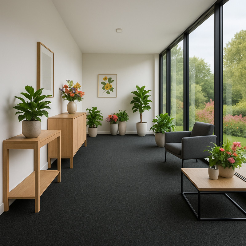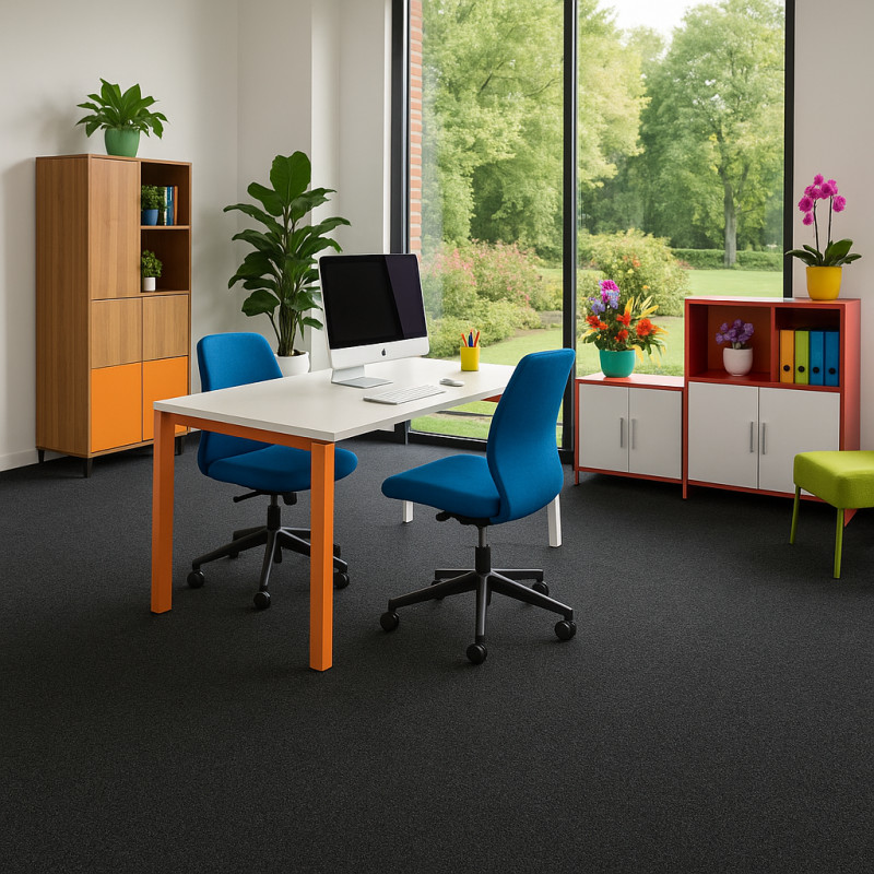 Tmavě zelený koberec udělá v každém komerčním interiéru parádu. Získá si Vás ale i celou řadou praktických vlastností. Je odolný, kompatibilní s kolečkovou židlí, snadný na údržbu a dobře tlumí hluk. To vše zajišťuje krátký smyčkový vlas a syntetická podložka na rubové straně.