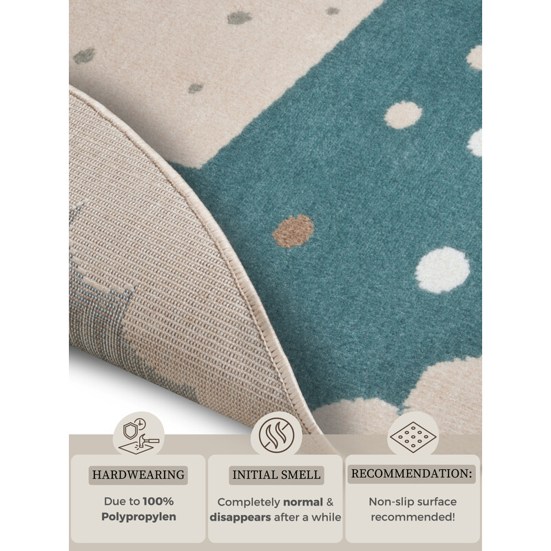 Rozjasněte dětský pokoj kruhovým krémově bílým kobercem s barevnými puntíky, který vnese radost a hravost do každého dne! Díky středně vysokému střiženému vlasu je koberec příjemný na dotek, snadno se čistí a skvěle vydrží každodenní dětské hry. Certifikace OEKO-TEX zaručuje, že je bezpečný i pro ty nejmenší. Obšitý po celém obvodu si zachovává svůj tvar...