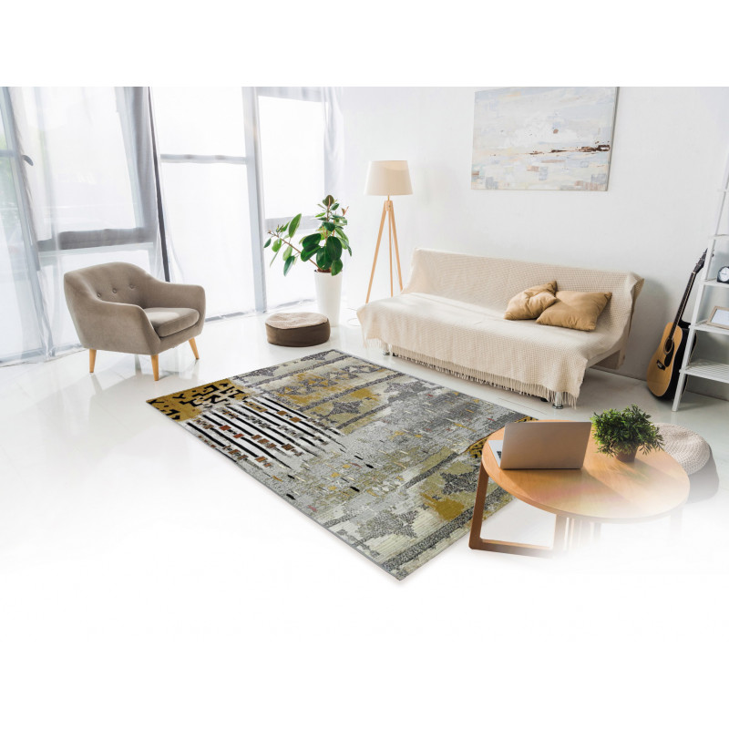 Ručně vázaný koberec byl inspirován řeckým a římským uměním. Připomíná mozaiky a fresky, které zkrášlovaly starověké chrámy a paláce, například Apollónův chrám v Delfách. Tento chrám byl ve starověku považován za střed světa a byl zdoben složitými vzory a tvary v odstínech hnědé, černé a dalších zemitých tónech. Tento koberec kombinuje různé odstíny šedé,...
