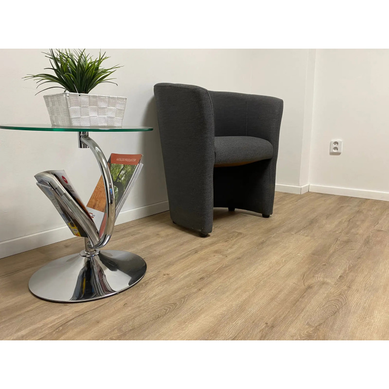 Vinylová podlaha s klasickým dřevěným dekorem s moderním šedým nádechem se stane správnou volbou, která obstojí nejen v domácnostech, ale i v komerčních interiérech. Jedná se o klikovou rigidní krytinu s tuhým jádrem a pevnými zámky. Má integrovanou podložku, což usnadňuje instalaci. Můžete ji položit na podlahové topení a poradí si i s kolečkovou židlí.