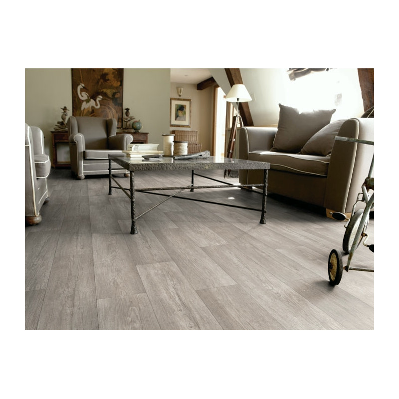 Šedé PVC Ambient Silk Oak 916L je praktickou podlahovou krytinou do téměř všech typů interiérů. Hodí se jak do moderních bytových prostorů, tak i do komerčních a průmyslových místností. Poradí si s kolečkovými židlemi i vytápěnými podlahami, nezalekne se ani běžných domácích chemikálií a skvěle vychází i se sluníčkem, které ho nevyšisuje.