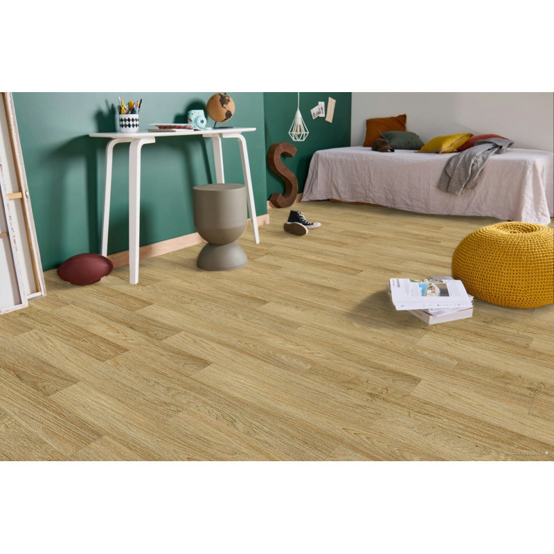 PVC podlaha Quintex Gambel Oak 116M je bytové PVC s dekorem dřeva. Krytina je opatřena protiskluzovou povrchovou úpravou a na rubové straně filcovou podložkou. Díky tomu dobře izoluje od chladu a tlumí hluk. Navíc ji lze položit na podlahové topení. Jedná se proto o skvělou volbu do všech typů domácností i komerčních prostor.