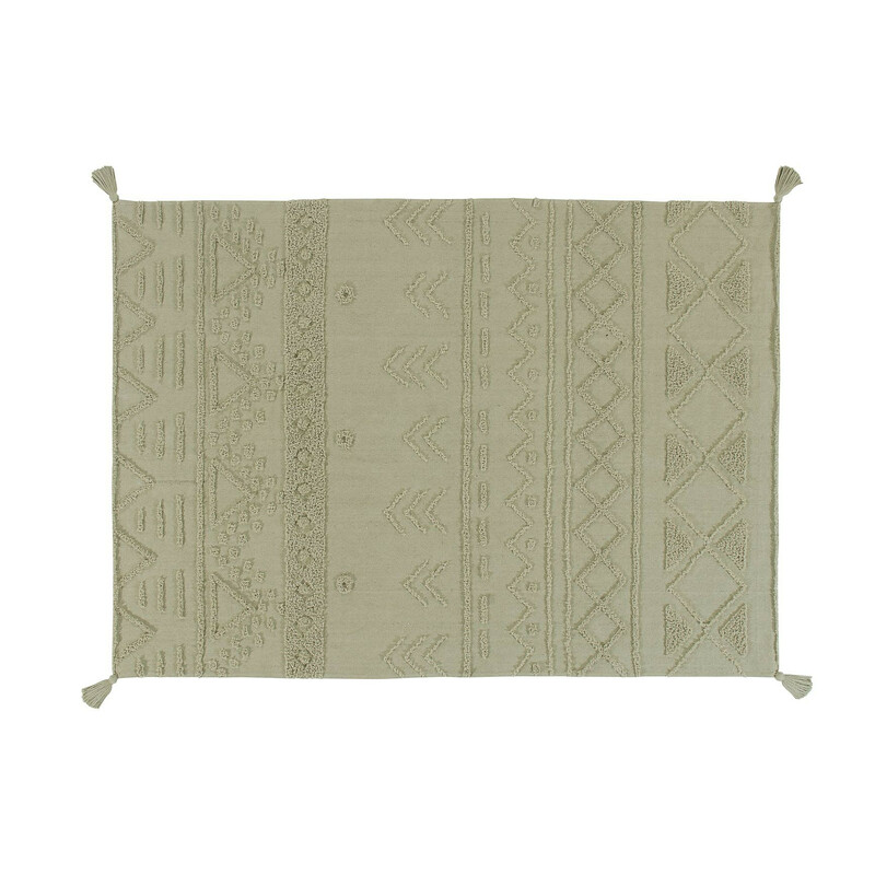Kusový koberec Tribu Olive v zelené barvě a obdélníkovém tvaru je vyrobený z přírodní bavlny, která je prodyšná, hebká a snadno pratelná. Tento koberec se hodí do obývacího pokoje nebo ložnice, kde zútulní prostor a zpříjemní chůzi naboso. Díky kvalitnímu zpracování vydrží krásný. dobře tlumí hluk.