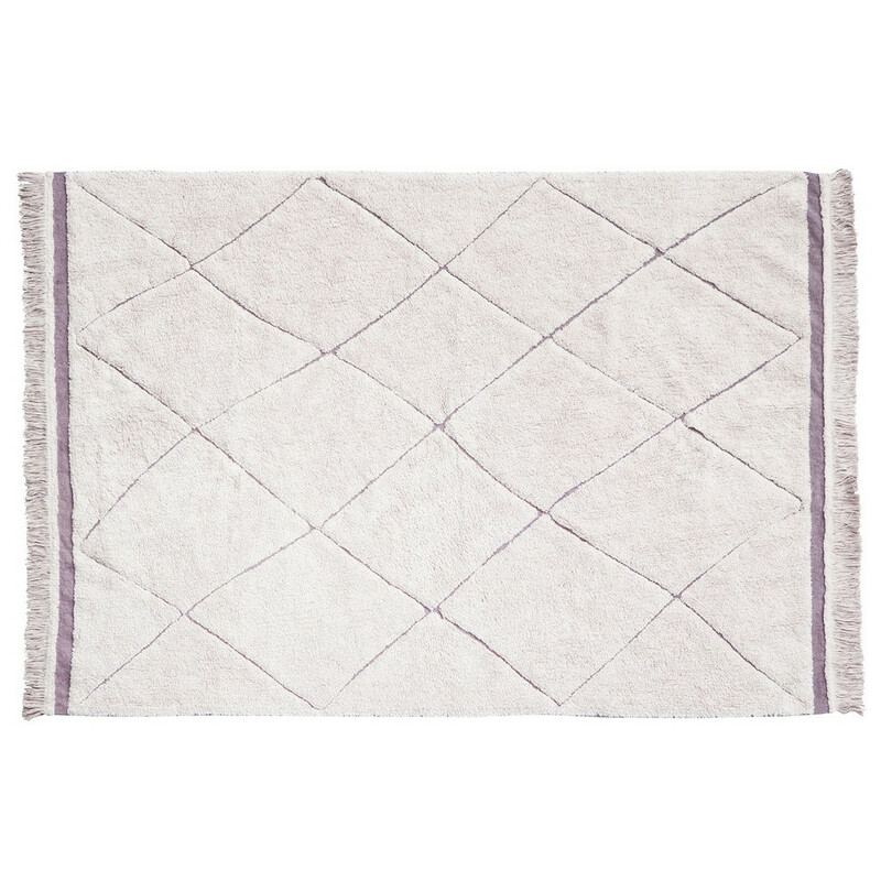 Pratelný koberec kombinující krémově bílou barvu s pastelovými proužky. Vyrábí se z přírodní bavlny a má plastický motiv. Třásně na kratších stranách mu dodávají šmrnc. Nemusíte se bát, že světlý koberec nenávratně ušpiníte, protože ho můžete v případě potřeby vyprat v pračce. Ideální volba do obývacího pokoje k pohovce nebo do ložnice k posteli.