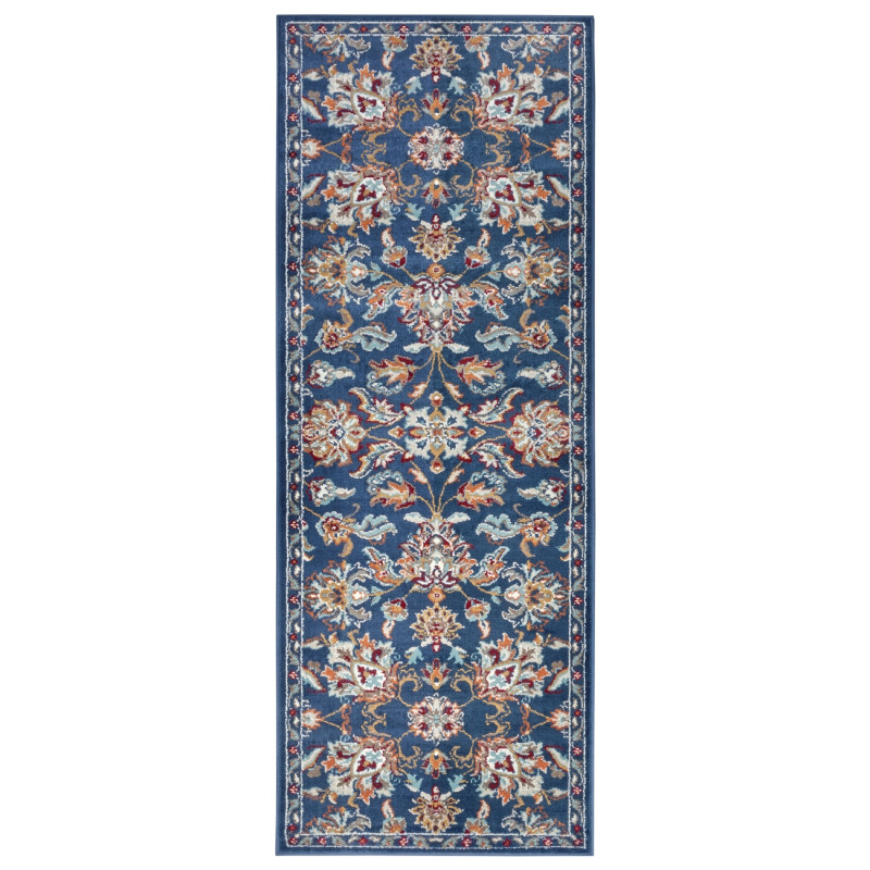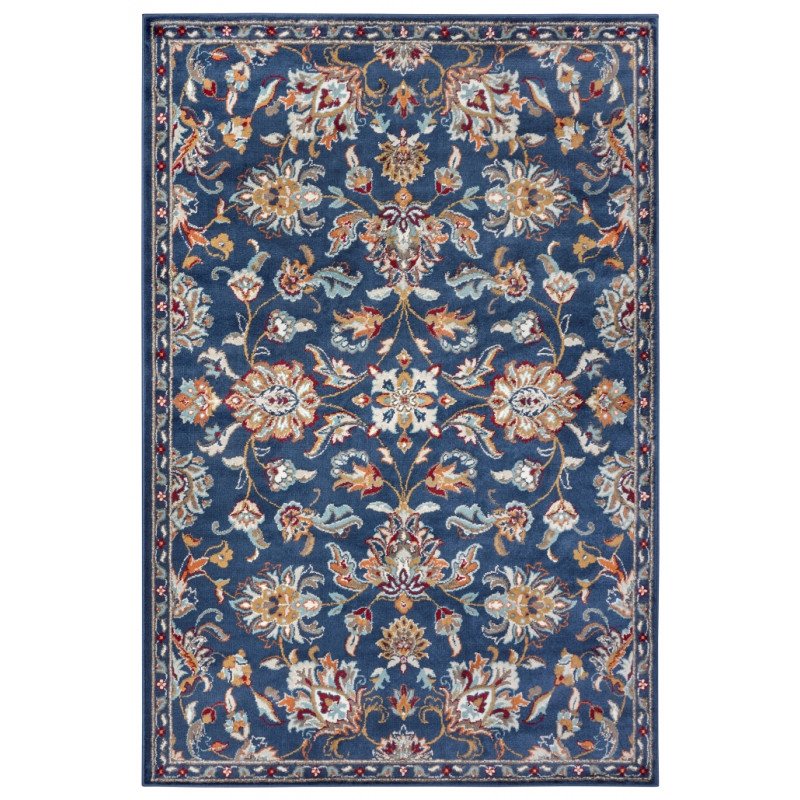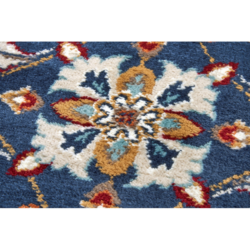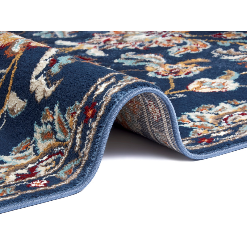 Orientální koberec v krásné modré barvě s květinovými vzory ozdobí každý obývací pokoj nebo ložnici. Do těchto místností se hodí nejlépe, protože je měkký a příjemný na došlap. Má totiž středně vysoký střižený vlas z polypropylenu. Další jeho výhodou je obšití po celém obvodu nebo snadná údržba.