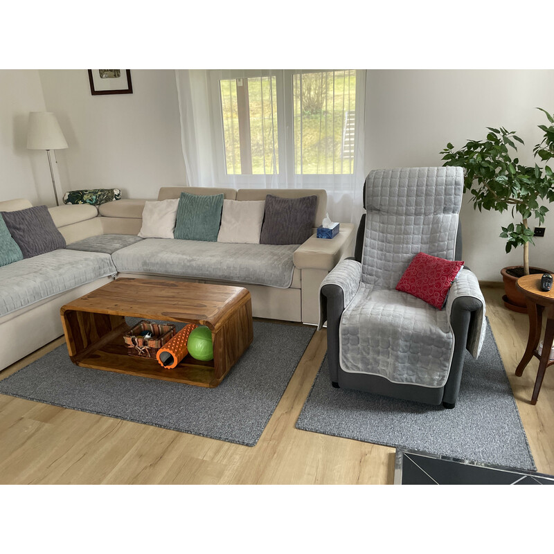 Některé koberce – hlavně lehčí nebo s hladkým rubem – mohou na hladkých podlahách lehce klouzat, zejména na vinylu, laminátu nebo dlažbě. Řešením je 🛡️