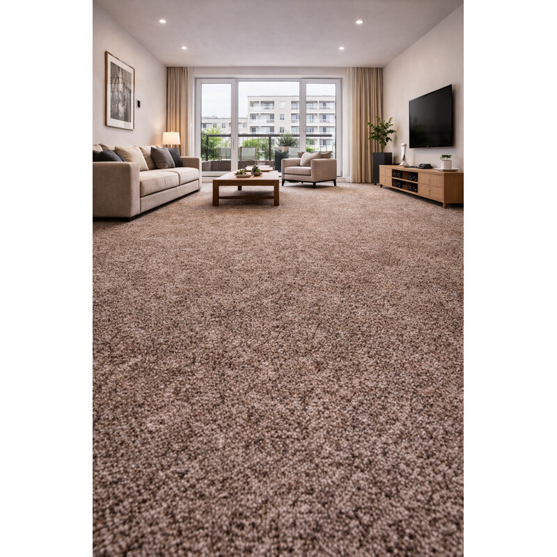 Světle hnědý bytový koberec Paula / 69 je ideálním společníkem do všech bytových prostorů. Zaujme zejména svým jednoduchým, ale přesto moderním vzhledem a snadnou údržbou. Jedná se o velur, který byl vyroben seříznutím vlasu ze 100% polypropylenového vlákna, jako podklad byl použit standartně filc.
