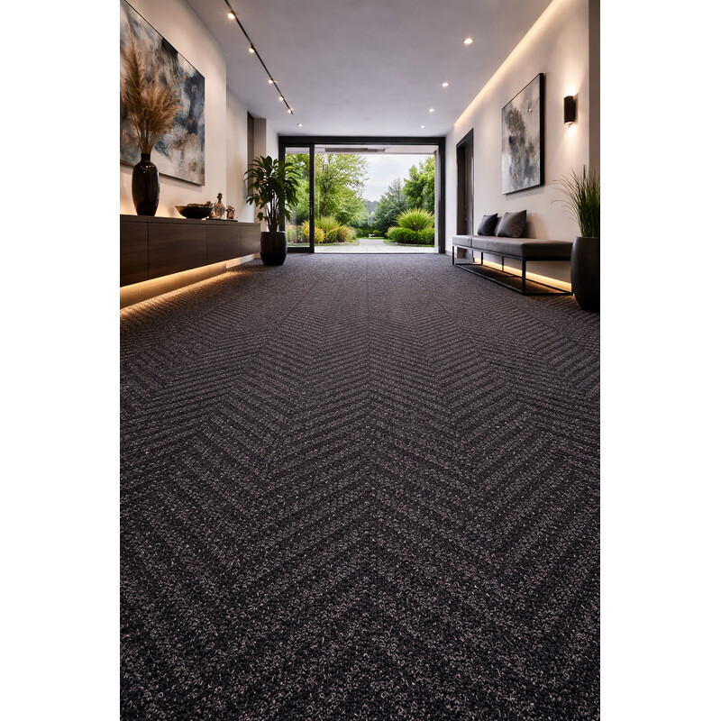 Metrážní čistící zóna Boomerang 50 černá má velmi zajímavý 3D vzor, který propůjčuje jak estetickou funkci, tak též napomáhá k zadržení více nečistot. Je velmi důležité položit správným směrem vzor s ohledem na směr chůze. Vyrobena je z polypropylenového vlákna, to zaručuje jednoduchou údržbu. Spodní strana tvoří guma, která pomáhá proti propustnosti...