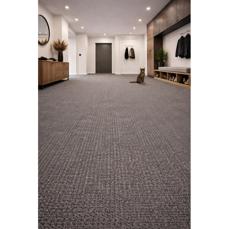 Světle šedý metrážový koberec e-blitz najde uplatnění v prostor s vysokou mírou zátěže a s nízkou možností zašpinění. Můžete se jednat o kanceláře a nebo schodiště, kde lidé nechodí v obuvi. Světlá barva má tu výhodu, že rozjasní místnost, kde je nedostatek přirozeného světla. Tmavý koberec by naopak mohl prostor zatemnit a udělat z něj tmavou "kopku"....