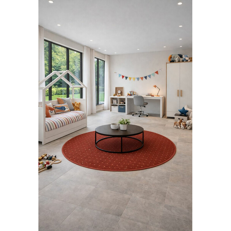 Kruhový koberec Udinese s krásnou barvou terra, která rozzáří i ponurý interiér. Krátký smyčkový vlas vytvoří kvalitní a velmi odolné tělo koberce, které snese vysokou zátěž, dobře se čistí a udržuje. Spodní strana opatřená filcem zajišťuje, nižší průnik chladu z podlahy a tlumí kročejový hluk. Koberec se skvěle hodí do obývacího pokoje, ložnice nebo do...