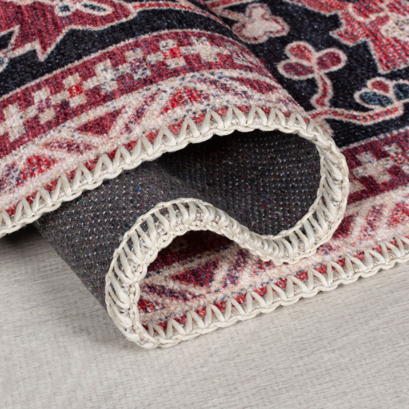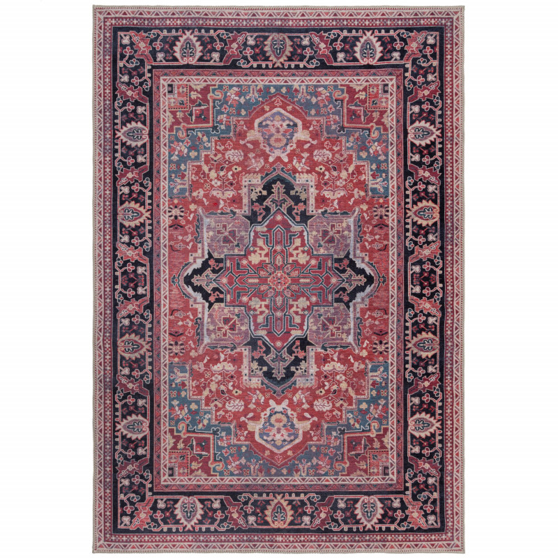 Výrazný koberec v červených a tmavě modrých až černých tónech s orientálním vzorem dodá vašemu interiéru hloubku a sofistikovaný charakter. Bohatá paleta barev a tradiční motivy vytvářejí nadčasový design, který skvěle doplní klasický i moderní styl bydlení. Koberec je vyroben ze směsi recyklovaných vláken a polyesteru, což zajišťuje jeho odolnost a...