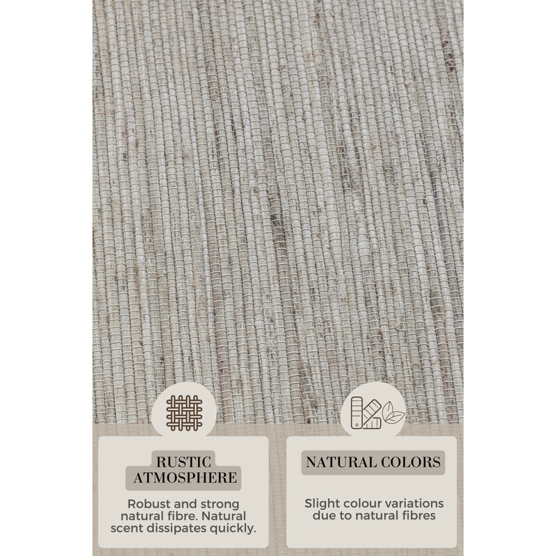 Ručně tkaný běhoun v krémově bílém odstínu s jemným melírováním přinese do interiéru svěží eleganci a nadčasový šarm. Jeho přírodní vzhled je podpořen pečlivě zpracovanou kombinací juty, vlny a bavlny, která vytváří odolný povrch. Díky nízkému vlasu typu bouclé je koberec nenáročný na údržbu a dokonale zapadne do moderních i klasických prostor.