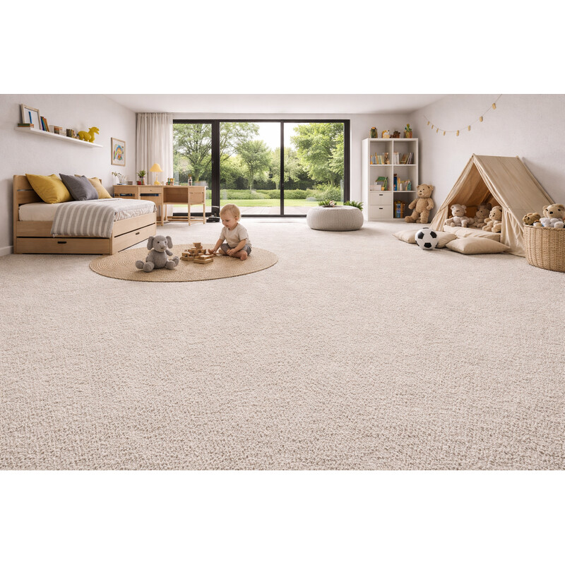 Krémový koberec v metráži je velmi praktický, protože skvěle prosvětlí Vaši domácnost. Dále se může pyšnit vysokou odolností, jelikož je vyroben z polypropylenu a má krátký střižený vlas. Další výhodou je snadná údržba a měkký došlap.