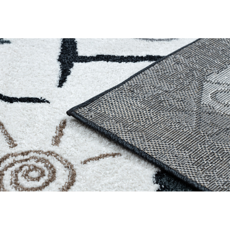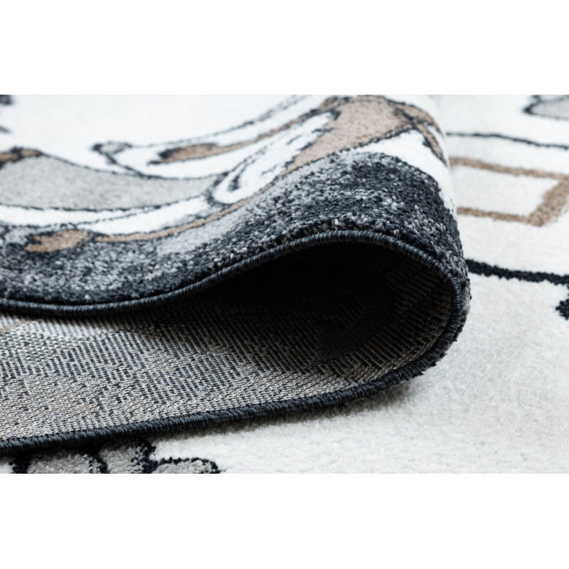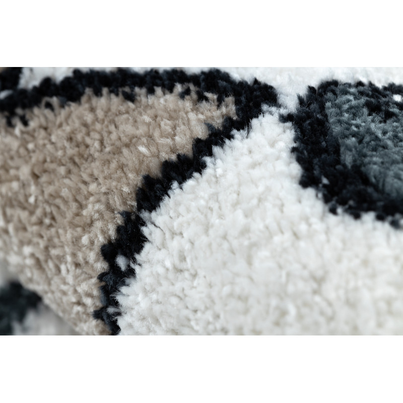Krémový koberec s výrazným 3D vzorem, který vytváří různě dlouhý vlas. Díky své neutrální barvě se hodí k jakémukoliv nábytku, a proto bude ozdobou každé domácnosti. Je vyroben ze směsi polyesteru a polypropylenu a má krátký vlas. Díky těmto parametrům je komfortní na došlap a snadný na údržbu.