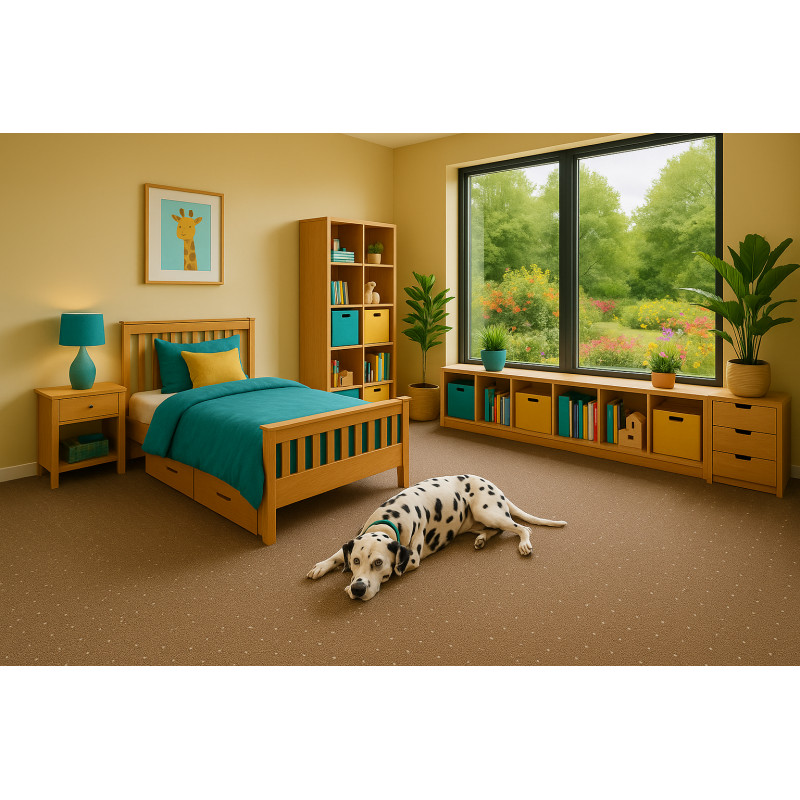Metrážový koberec světle hnědé barvy, který skvěle zapadne do mnoho různých interiérů. Přesně tak vypadá zátěžový koberec New Orleans 142, jehož krátký vlas je vyroben z 100% polypropylenu. Tento koberec je snadno udržovatelný a odolný proti skluzu. Podkladem u tohoto koberce je gel (nikoliv resine).