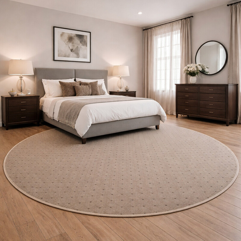 Kusový koberec Udinese v kruhovém tvaru patří mezi velmi oblíbené koberce. Jeho nová béžová barva se zajímavým šedým nádechem na kterém nebude hned vidět nečistota. Velkou oblibu tento koberec dostal díky velmi pevnému vlasu, který tvoří "baculaté" smyčky. Barevnou jednoduchost koberce je ozvláštněno kostkovou strukturou, která je tvořena tmavšími body....