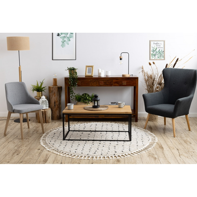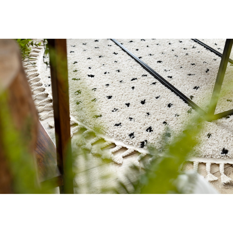 Kusový kruhový koberec Syla v krémové barvě s tečkami. V jeho jednoduchosti je krása a díky tomu se hodí do mnoha typů interiérů, nejvíc tento koberec se hodí do interiérů ve stylu boho. Decentní barva, shaggy vlas a vysoká hustota vám zaručí příjemný pocit na dotyk. Koberec je vyrobený z velmi kvalitního polypropylenu, který mu vypůjčuje velkou stálost....