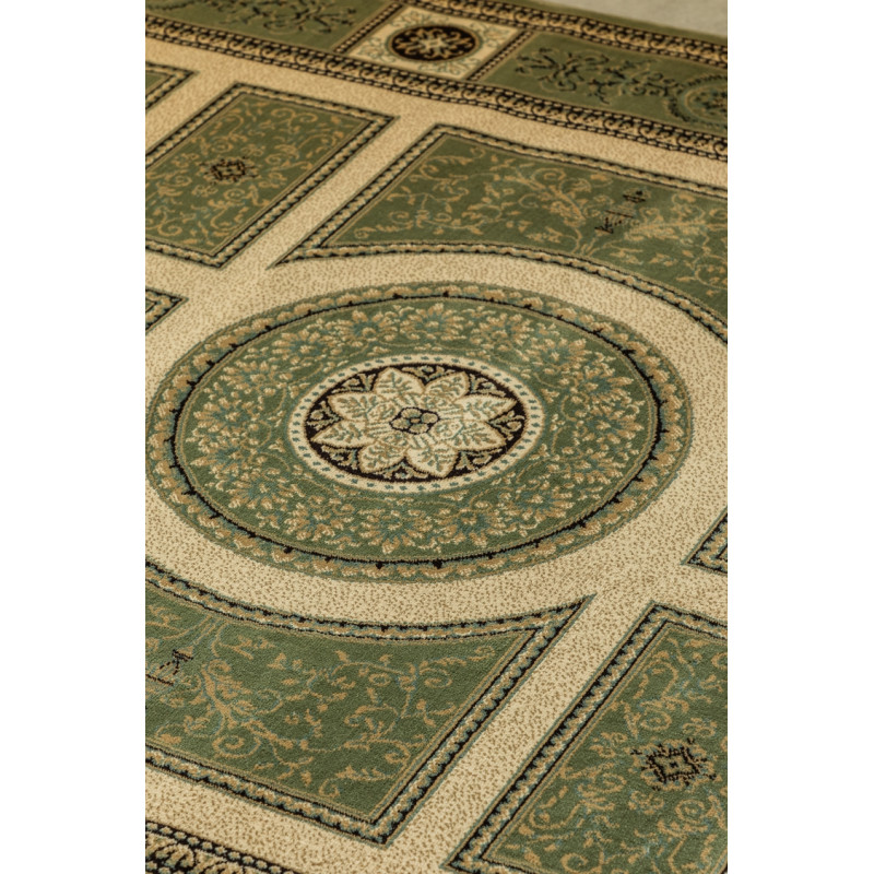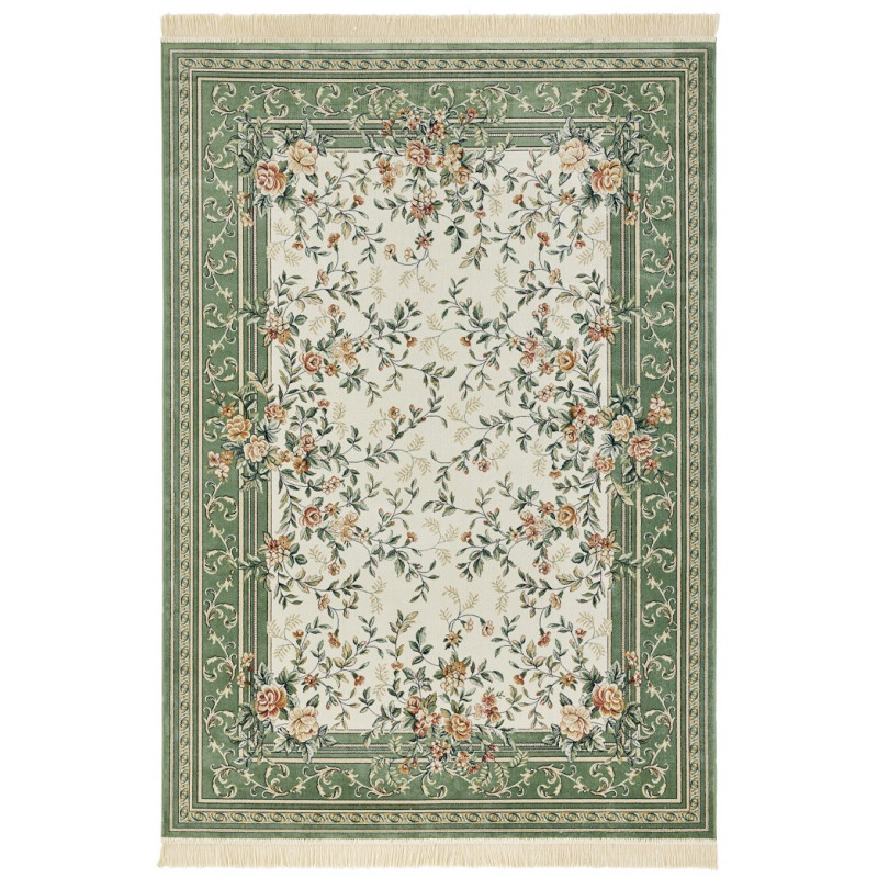 Do zelena zbarvený kusový koberec s květinovým vzorem, který je doplněný i modernějším prvkem. Tento koberec z 60% Viskózy a 40% Bavlny sice vyniká pěkným a povedeným designem, ale zapomínat se nesmí ani na jeho nízkou hmotnost a celkově velmi dobrou kvalitu. Koberec je navíc příjemný na dotek.