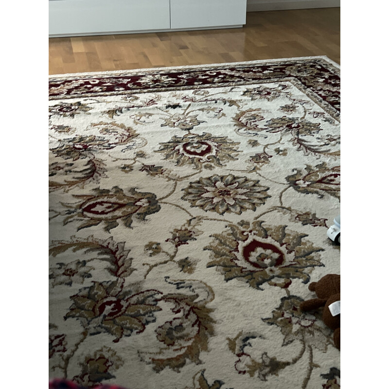 Objevte kouzlo kusového koberce, který vás uchvátí svým vintage vzhledem. Tento kousek má světle béžový střed a výrazné červené lemování, které přinese do vašeho domova jiskru a nádech elegance. Koberec je vyrobený z kvalitního polyesteru s nízkým střiženým vlasem, což usnadňuje údržbu a čištění, například pomocí robotických vysavačů. Rubová strana z...