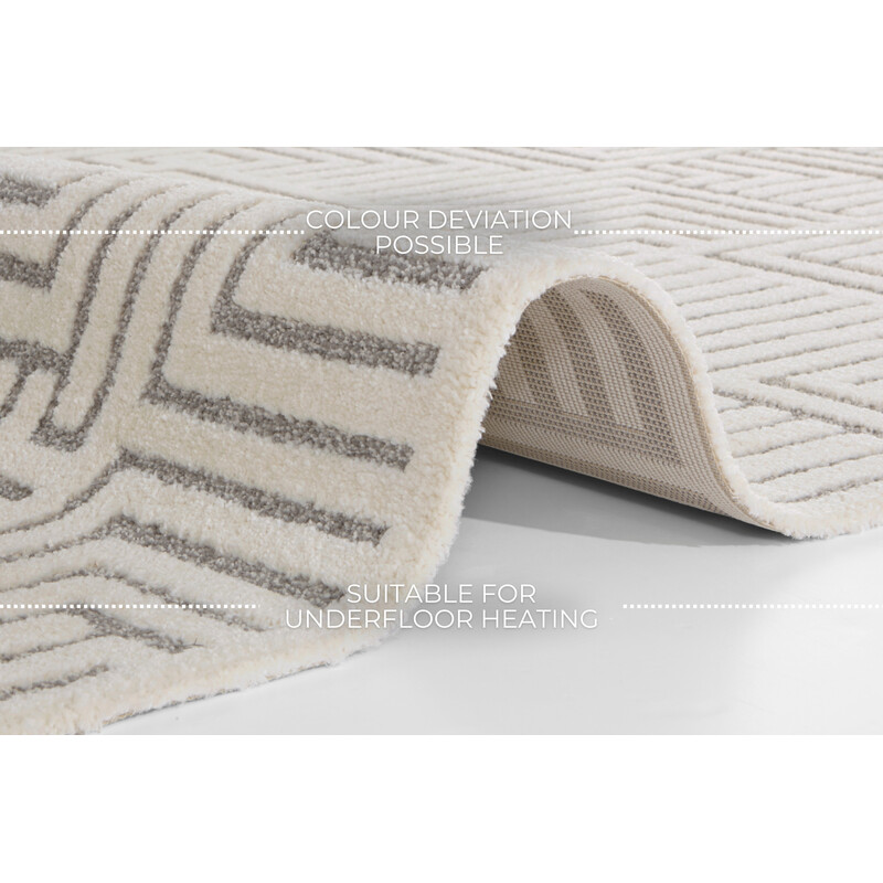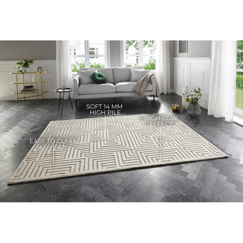 Šedý moderní koberec z polypropylenu heatset je odolný a komfortní na došlap. Jistě Vás zaujme 3D geometrickým vzorem, který vzniká kombinací středně vysokého smyčkového a vyššího střiženého vlasu. Mezi jeho přednosti patří obšití po celém obvodu či antistatická úprava.