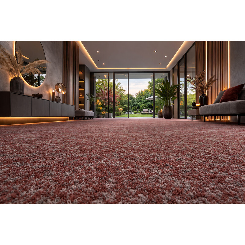 Hnědý metrážový koberec vyrobený z polypropylenového vlákna. Může se pyšnit poutavým melírováním, díky kterému nemá úplně jednotnou barvu. Má krátký smyčkový vlas, a proto se vyznačuje vysokou odolností a snadnou údržbou. Poslouží i v zatěžovanějších místnostech v domácnosti.