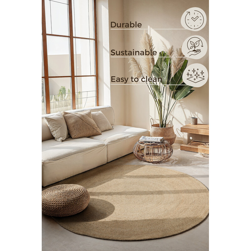 Tento béžový koberec zaujme svým přirozeným vzhledem díky jemně pletené struktuře ze 100% juty, která dodá interiéru útulný a rustikální nádech. Díky přírodnímu materiálu je odolný a snadno se udržuje, přičemž juta přirozeně odpuzuje prach. Koberec je ekologický a bezpečný pro zdraví, což dokládá i certifikát OEKO-TEX.
