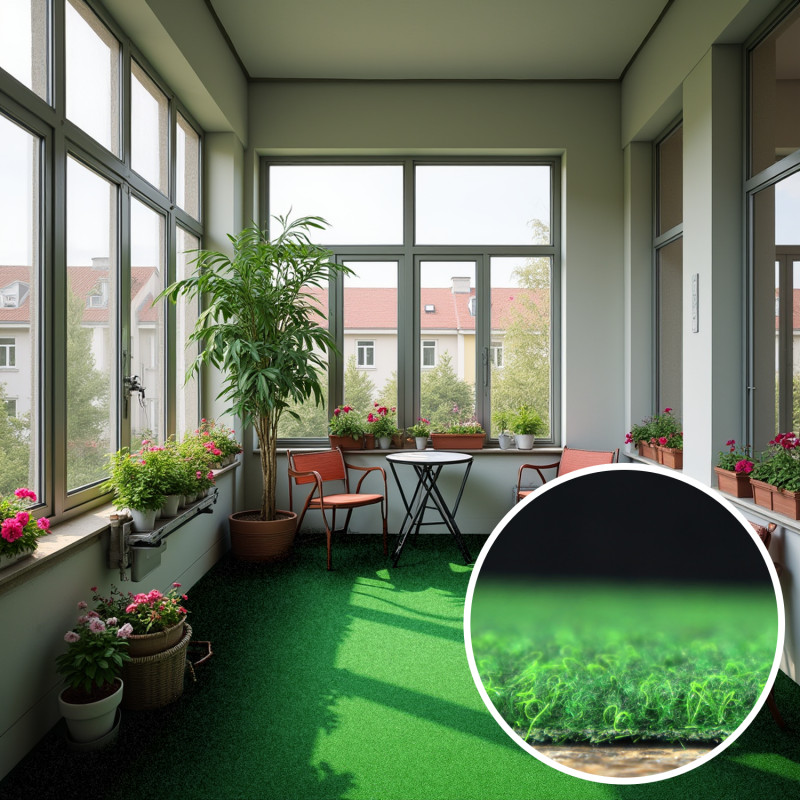 Kusový travní koberec Sporting skvěle poslouží na balkoně, terase, pod bazénem i v interiéru. Jedná se o kvalitní vpichovanou umělou trávu za fantastickou cenu, která má pevnou spodní část bez nopů (precoat). Díky velmi krátkému vlasu je výhodou snadná údržba. Vyrábí se z polypropylenu, a proto je velmi odolná. Na přímém slunci může relativně rychle měnit...