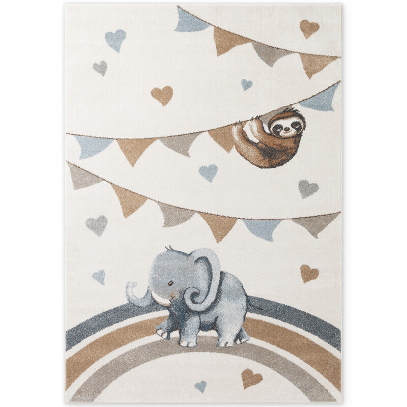 Krémově bílý koberec vypráví veselý příběh o slonovi, který se s lehkostí prochází po duze, zatímco jeho kamarád lenochod sleduje svět s typickým klidem a úsměvem. Jemné pastelové barvy a měkké kontury vytvářejí radostnou a přívětivou atmosféru, která rozvíjí dětskou fantazii. Hebký povrch je ideální pro hraní, lezení i odpočinek, zatímco snadná údržba...