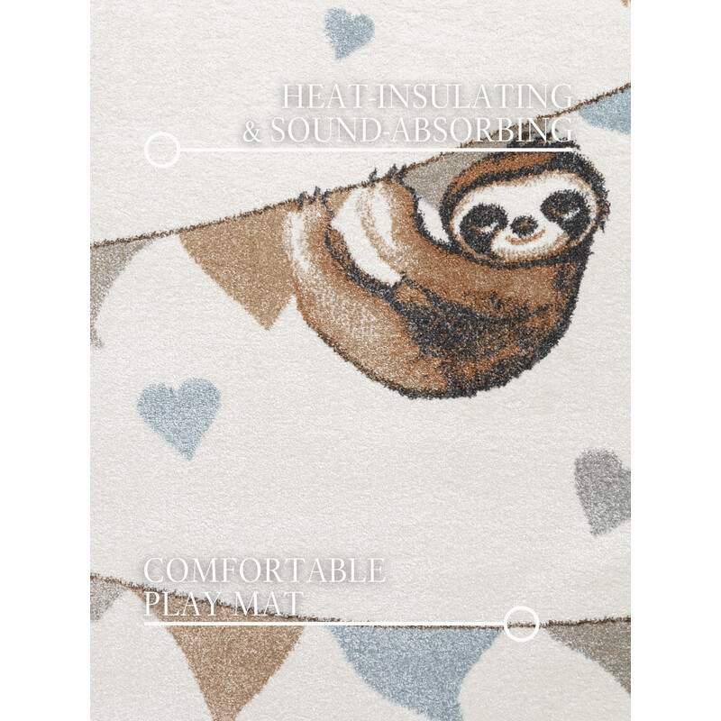 Krémově bílý koberec přináší do dětského pokoje kouzelnou scénu, kde se slon s parapletem vydává na dobrodružství se svým ospalým kamarádem lenochodem. Společně vytvářejí milý a hravý motiv, který probouzí fantazii a vykouzlí úsměv při každém pohledu. Jemné pastelové barvy působí uklidňujícím dojmem, zatímco měkký povrch zve ke hře, odpočinku i mazlení....