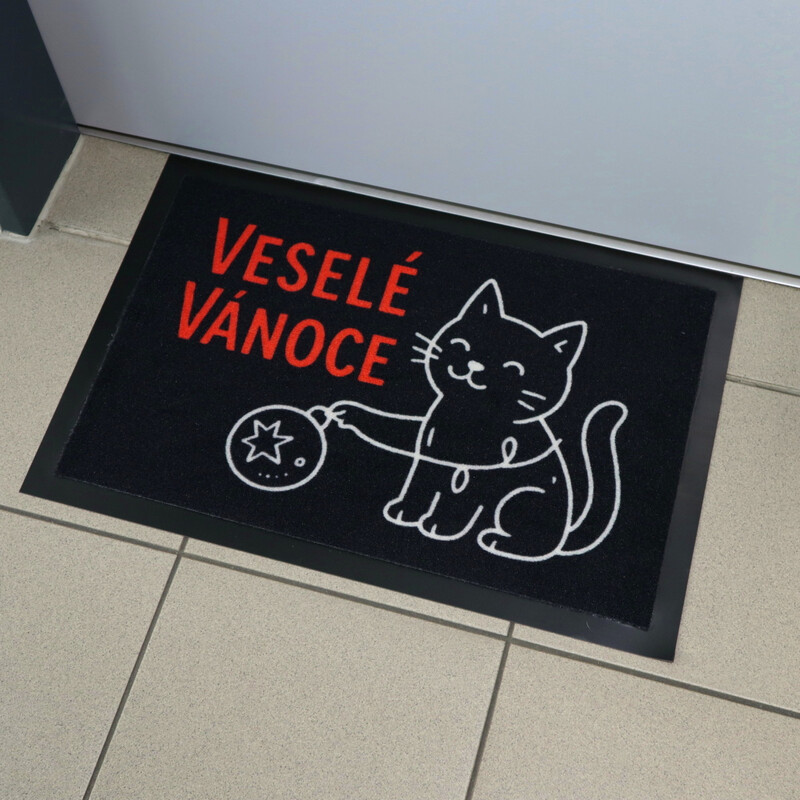 Vánoční rohožka s roztomilou kočičkou pro navození příjemné atmosféry i upozornění návštěvy, že této domácnosti velí chlupatý generál. Rohožka má odolný a kvalitní povrch, který si poradí i s tlapkami po procházce v blátě. Spodní strana z protiskluzové gumy zajišťuje, že rohožka zůstane bezpečně na místě a neklouže po podlaze. Díky gumovému podkladu navíc...