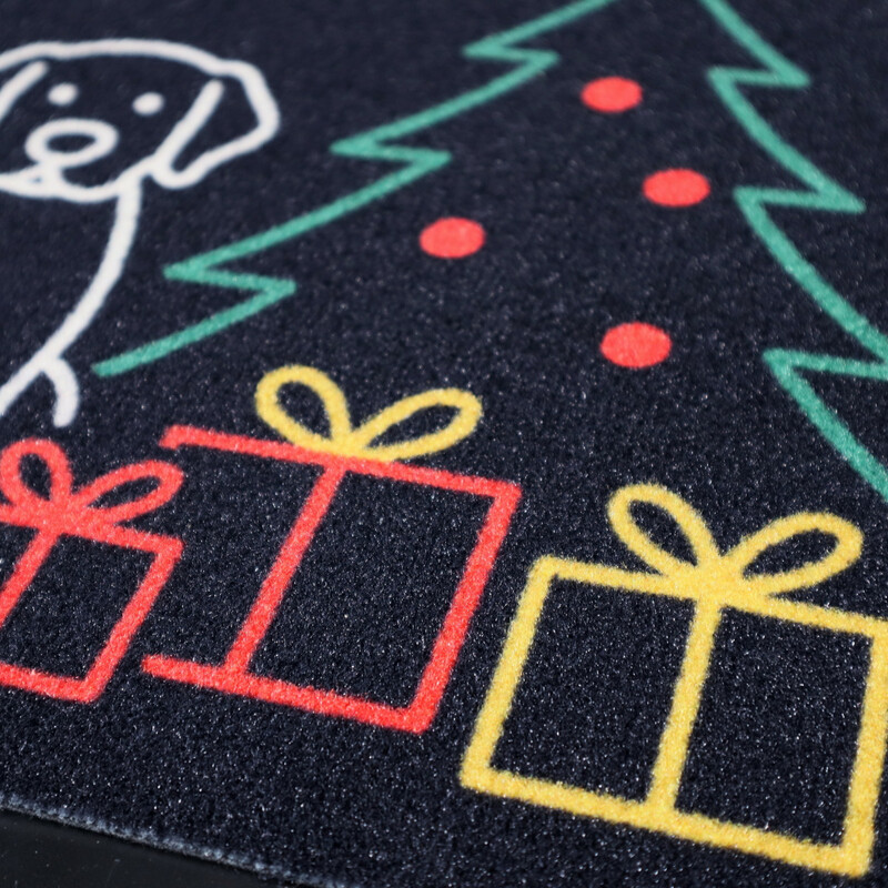 Rohožka, která potěší všechny milovníky chlupáčů! Na první pohled dá každému jasně najevo, že tady se slaví Vánoce s celou smečkou, se psem, kočkou i hromadou dárků pod stromkem. Ať už přijde Ježíšek, nebo jen návštěva, tahle rohožka jim vykouzlí úsměv na tváři. Má odolný a kvalitní povrch, který si poradí i s tlapkami po procházce v blátě. Spodní strana...