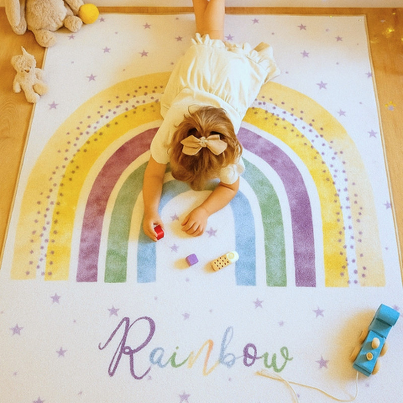 Dětský kusový koberec v hravé béžové barvě vytvoří veselou atmosféru v každém dětském pokoji. Vyrobený z odolného polypropylenu, který se snadno čistí a dlouho vydrží jako nový. Spodní vrstva z latexové vrstvy zabraňuje posunu koberce po podlaze.