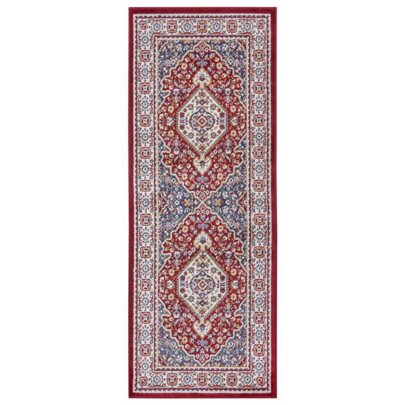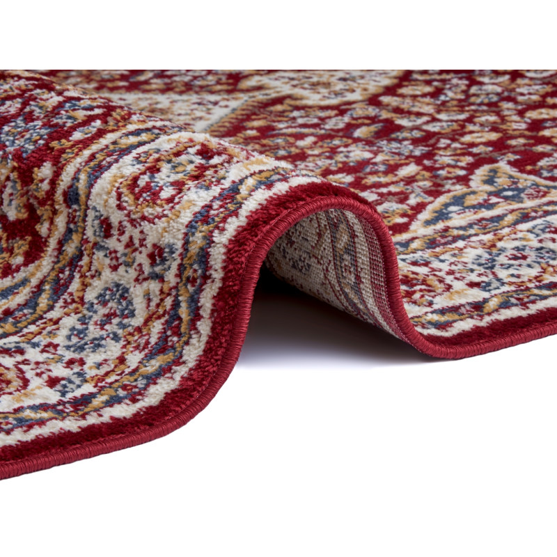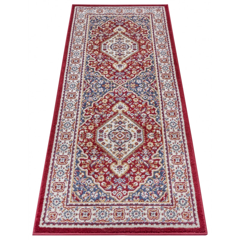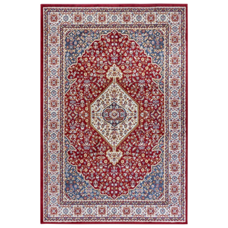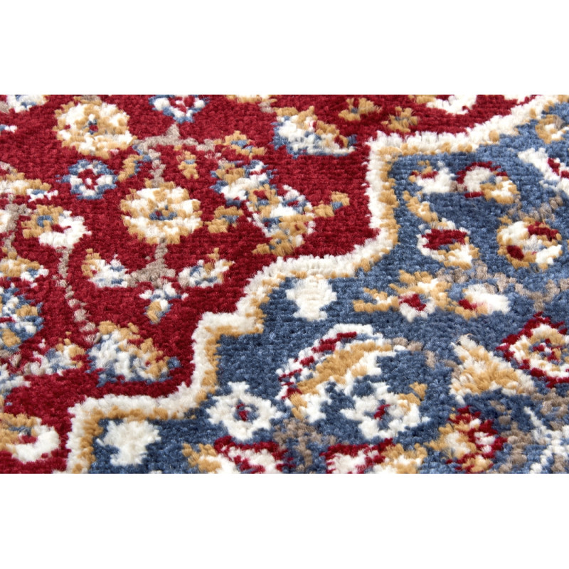 Vícebarevný orientální koberec, který má uprostřed krémově bílý a červený medailon obklopený tmavě modrým pozadím. Tato trikolora vypadá senzačně a ozdobí každý obývací pokoj nebo ložnici. Koberec se vyrábí z polypropylenového vlákna a má středně vysoký střižený vlas.