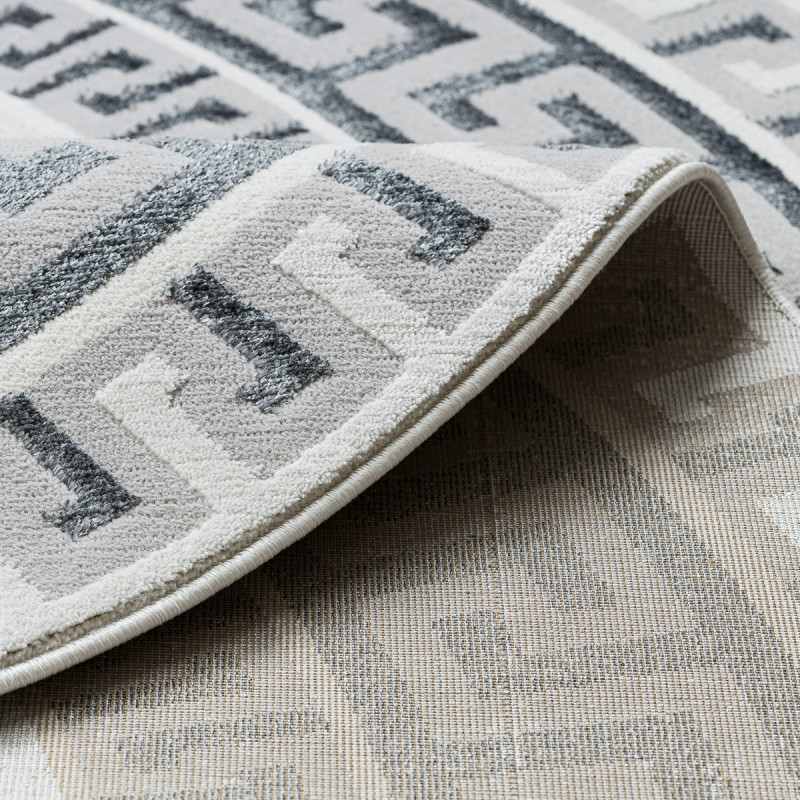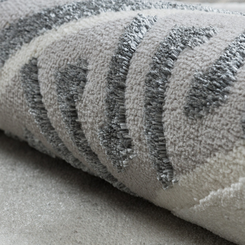 Běhoun přináší atraktivní kombinaci mátově zelené barvy a různých odstínů šedé, která osvěží každý interiér. Geometrický vzor s ručně vyřezávanými obrysy tvarů vytváří zajímavý 3D efekt. Krátký vlas zaručuje snadnou údržbu, což ocení především rodiny s malými dětmi nebo domácími mazlíčky. Polypropylen koberci poskytuje vysokou odolnost a příjemný komfort.