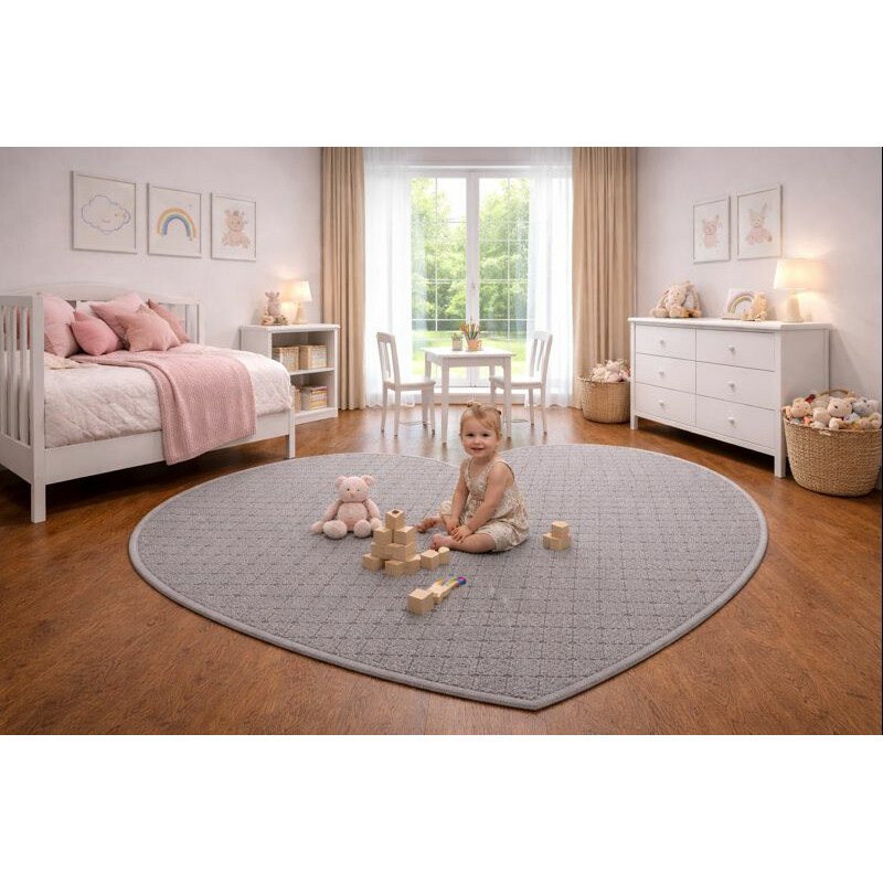 Kusový koberec Udinese šedý ve tvaru srdce je kvalitním kobercem s oblíbeným krátkým smyčkovým vlasem. Díky němu koberec nepíchá, nežmolkuje se a hlavně se velice snadno udržuje. Tento koberec je na výběr v mnoha velikostech s možností objednávky na míru. Po celém obvodě je obšitý pevnou nití.