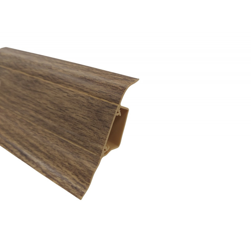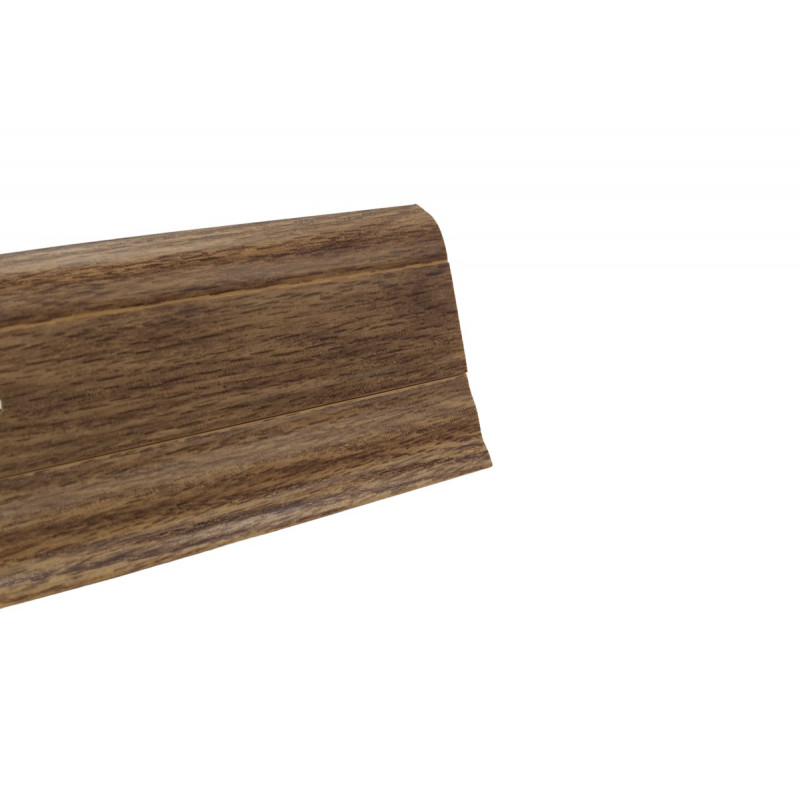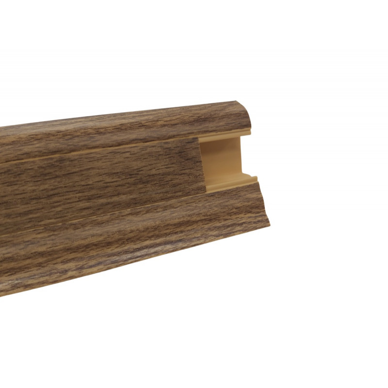 Soklová obvodová lišta SLK50 v dekoru ořechového dřeva pro použití v kombinaci s PVC včetně všech potřebných doplňků jako jsou rohy, spojky a koncovky. Tato lišta v sobě obsahuje kabelový kanálek, kde kabel je možné táhnout i skrz jednotlivé komponenty. Lišta je opatřena měkkými manžetami u podlahy a stěny. Vyrábí se z materiálu na bázi PVC.