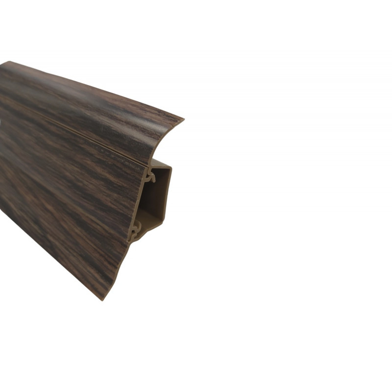Soklová obvodová lišta SLK50 v dekoru ořechového dřeva pro použití v kombinaci s PVC včetně všech potřebných doplňků jako jsou rohy, spojky a koncovky. Tato lišta v sobě obsahuje kabelový kanálek, kde kabel je možné táhnout i skrz jednotlivé komponenty. Lišta je opatřena měkkými manžetami u podlahy a stěny. Vyrábí se z materiálu na bázi PVC.
