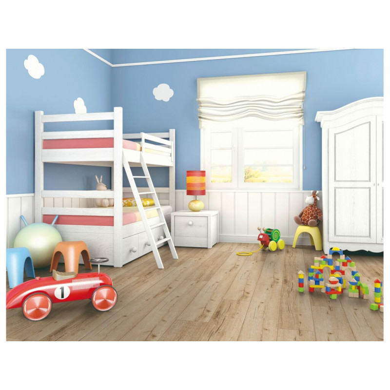 Laminátová podlaha Natura V 31 71061 Dub Achensee v imitaci pravého dubového dřeva v přirozeném světlém odstínu. Má realistickou kresbu dřeva s jemnými suky a přirozenými přechody, díky nimž působí prostor živě, ale stále elegantně. Podlaha je vyrobena z kvalitní HDF desky s ochranou proti bobtnání, která zaručuje rozměrovou stabilitu a dlouhou životnost....