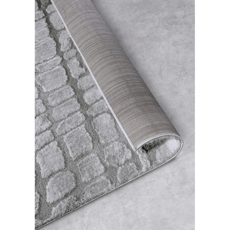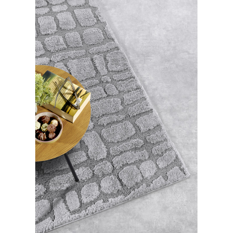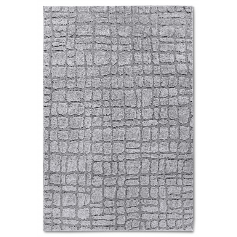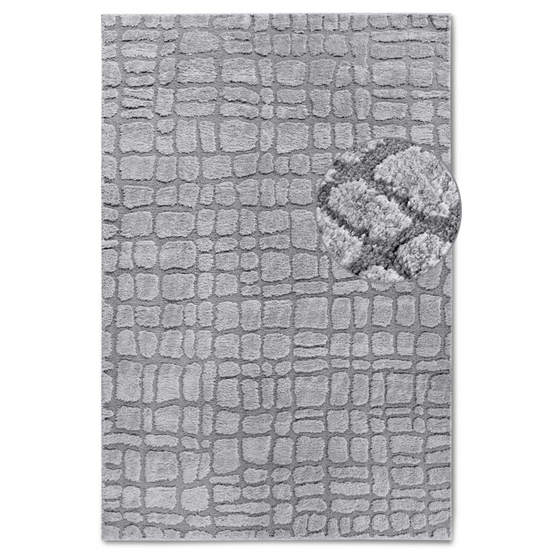 Šedý koberec s geometrickým 3D motivem přinese do vašeho interiéru moderní design a vizuální zajímavost. Jeho jemný vysoký shaggy vlas poskytuje příjemný pocit při každém kroku. Pečlivé obšití po celém obvodu zvyšuje jeho odolnost, zatímco certifikát Oeko-Tex zajišťuje, že je vyroben bez škodlivých látek a šetrný k životnímu prostředí.