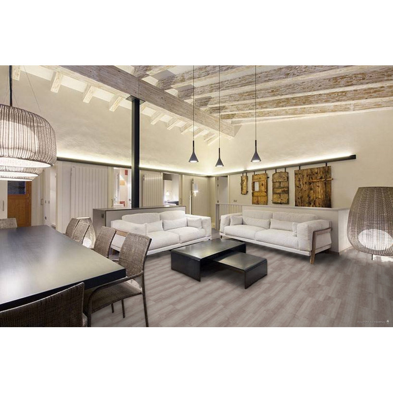 Při pohledu na tuto vinylovou podlahu budete mít pocit, že se jedná o dřevěnou podlahu. Dekor je skutečně velmi věrohodný a bude dělat parádu nejen v domácnostech, ale také v komerčních interiérech. Vinylové dílce mají ochrannou vrstvu PUR, která zvyšuje odolnost povrchu, a také antistatickou a protiskluzovou úpravu.