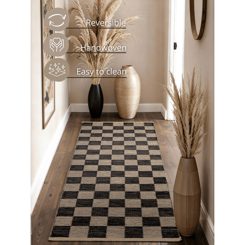 Tento černobílý běhoun si vás získá na první pohled výrazným kostkovaným vzorem, který dodá prostoru šmrnc a trochu hravosti. Kombinace světlého podkladu a tmavých linií působí kontrastně, ale stále příjemně útulně, takže se skvěle hodí jak do ložnice, tak třeba do obýváku. Díky ruční výrobě má navíc krásně přirozenou strukturu a nepůsobí strojově. Nízký...