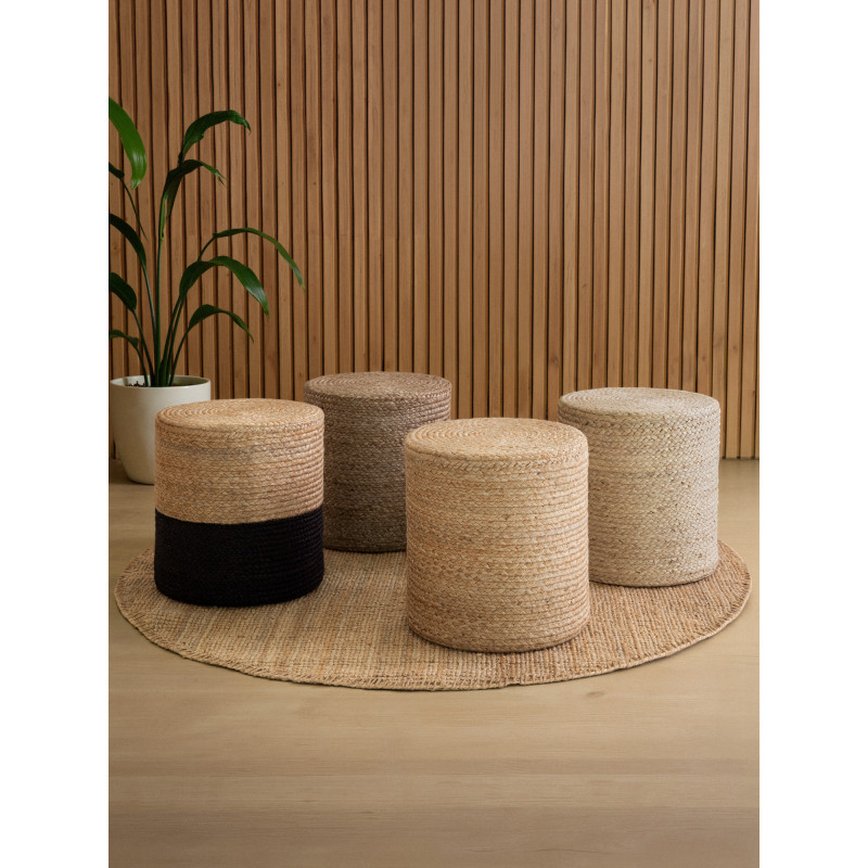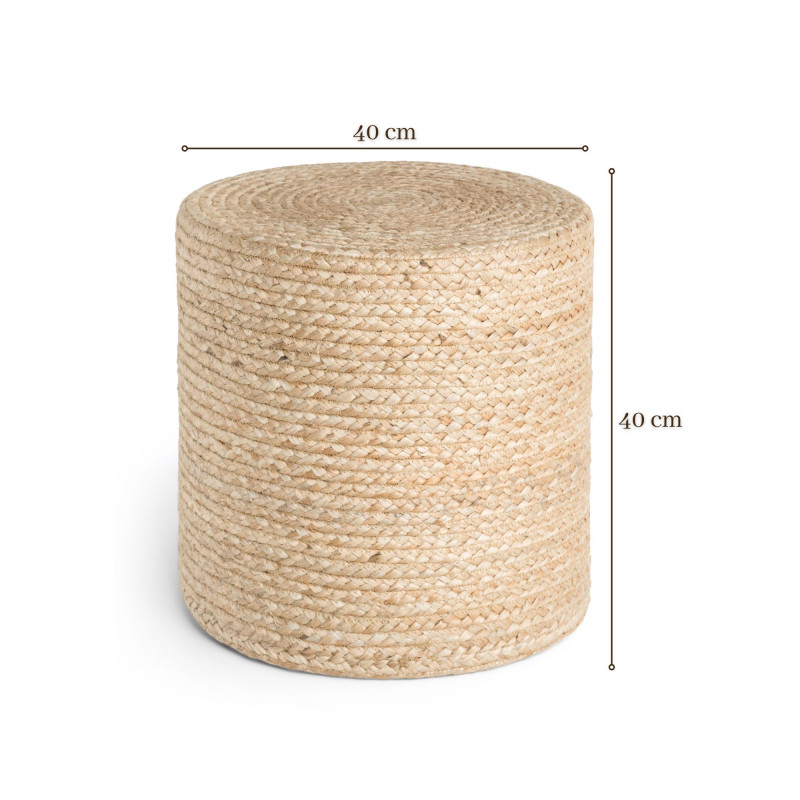 Ručně vyráběný jutový sedací vak Jutta v béžové barvě v boho stylu zaujme spleteným designem a válcovým tvarem. Je udržitelný, certifikovaný GRS, odolný a využitelný jako sedák, podnožka i stylový doplněk do interiéru.