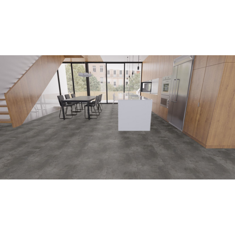 Tmavě šedý lepený vinyl, který si Vás získá řadou praktických vlastností. Vysokou odolnost zajišťuje ochranná vrstva PUR a relativně tlustá nášlapná vrstva. Další výhodou je kompatibilita s kolečkovou židlí a podlahovým topením. Tato kvalitní podlahová krytina najde uplatnění v domácnostech, komerčních i průmyslových interiérech.