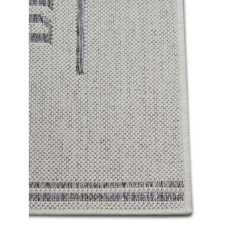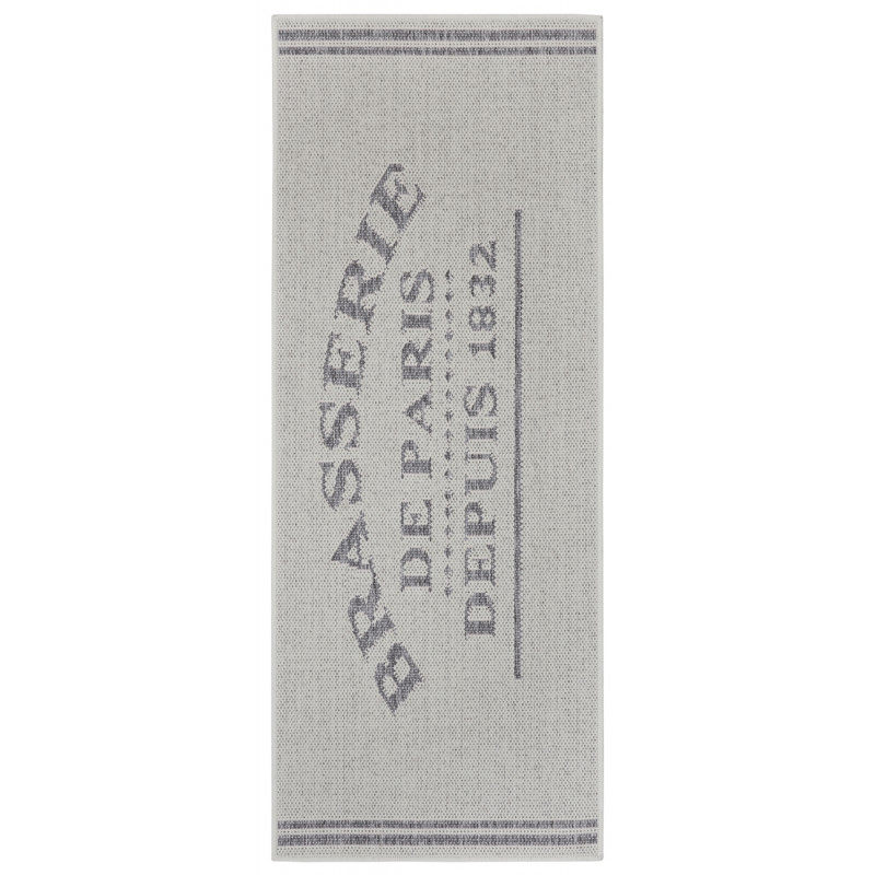 Praktický kuchyňský běhoun v krémově bílé barvě s šedým nápisem a lemováním na kratších stranách. Díky svému neutrálnímu provedení se hodí do jakkoliv barevné kuchyně. Vyrábí se z pevného polypropylenového vlákna a má velmi nízký smyčkový vlas. Proto se vyznačuje snadnou údržbou pomocí vysavače nebo kobercové pěny.
