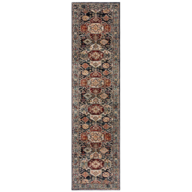 Modrý běhoun s různobarevnými orientálními vzory přinese do interiéru živou atmosféru. Jeho design kombinuje tradiční motivy s moderním pojetím, což vytváří atraktivní kontrast. Je vyrobený ze 100% polypropylenu, a proto nabízí vysokou odolnost a snadnou údržbu.