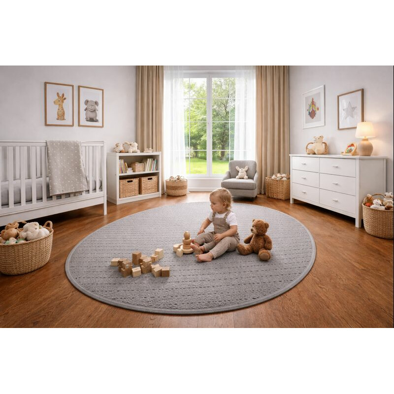 Krémově bílý kruhový koberec se zvířátky je skvělou volbou do dětského pokoje, kde vytvoří hravé a útulné prostředí. Jemné barvy a roztomilý motiv přinesou radost a styl zároveň. Koberec je vyroben ze 100% polypropylenového vlákna, což mu dodává měkkost a odolnost, takže je ideální pro každodenní hraní.