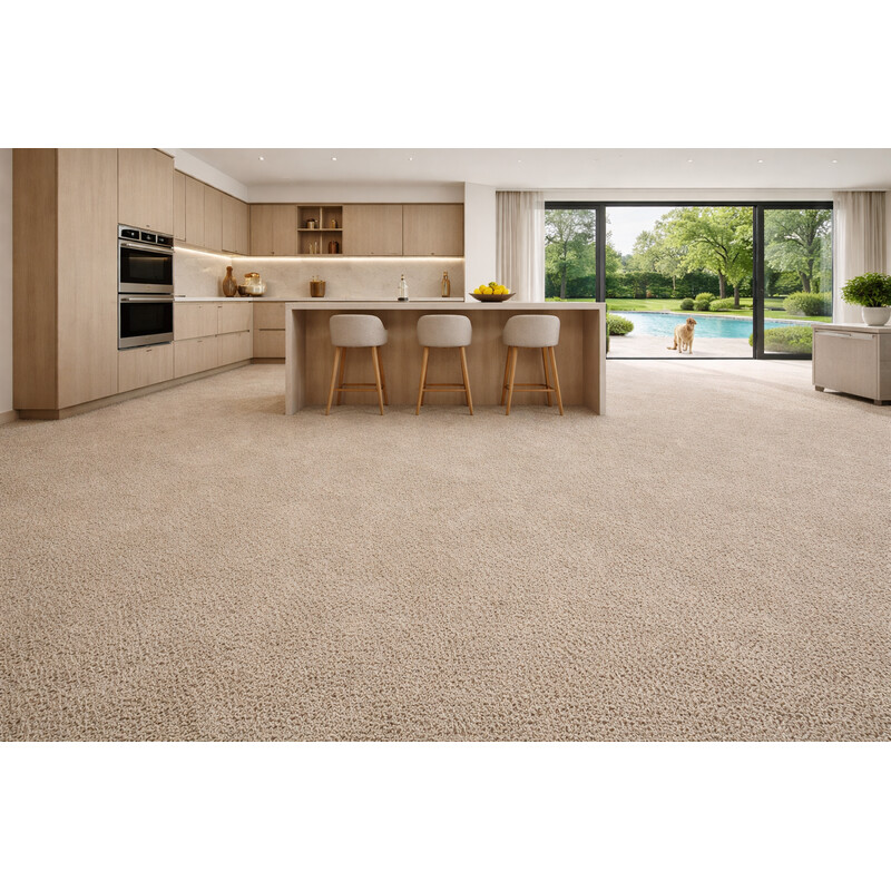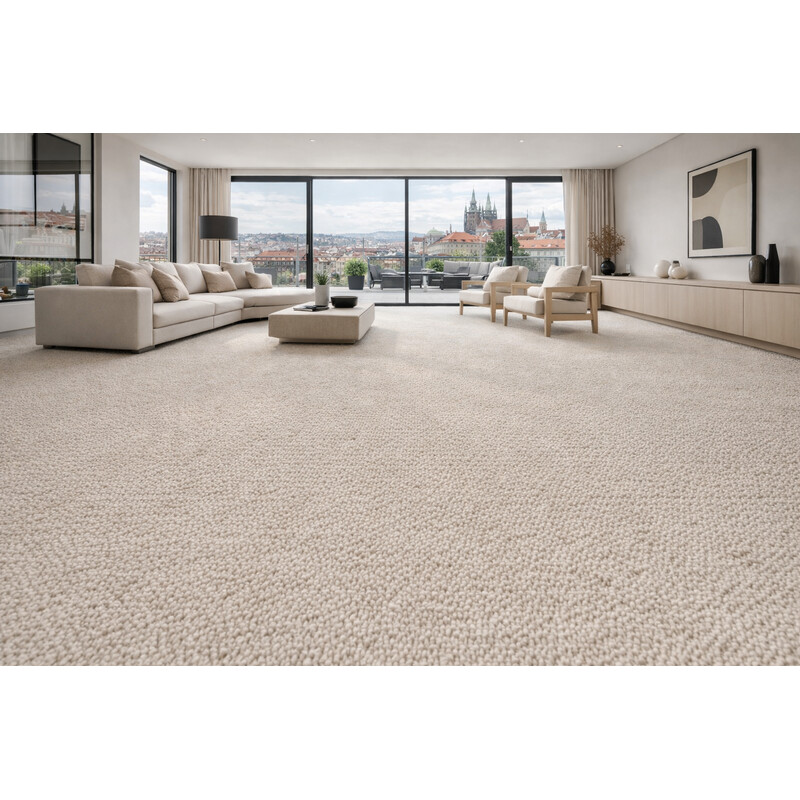 Béžový metrážový koberec vyrobený z pevného polypropylenu najde uplatnění v každé domácnosti. Pro své parametry se hodí i do místností s vyšší zátěží. Mezi jeho přednosti patří snadná údržba a komfortní došlap, což zajišťuje krátký střižený vlas.