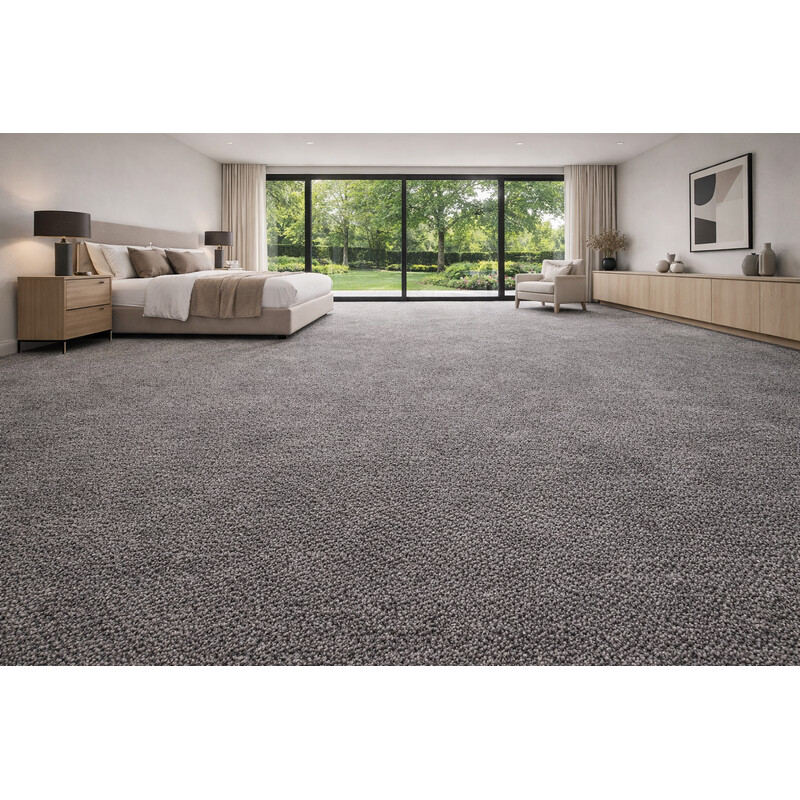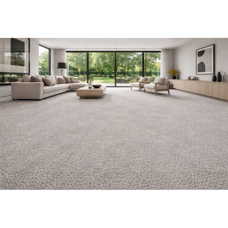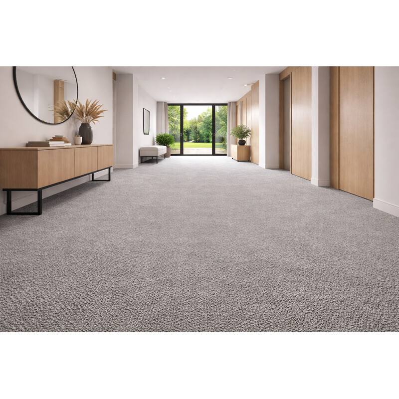 Šedý koberec v metráži je klasika, která neomrzí. Díky své neutrální barvě totiž ladí k jakémukoliv nábytku. Jedná se o pevný kousek odolný proti skvrnám. Má krátký střižený vlas, který je komfortní na došlap. Další výhodou je snadná údržba.