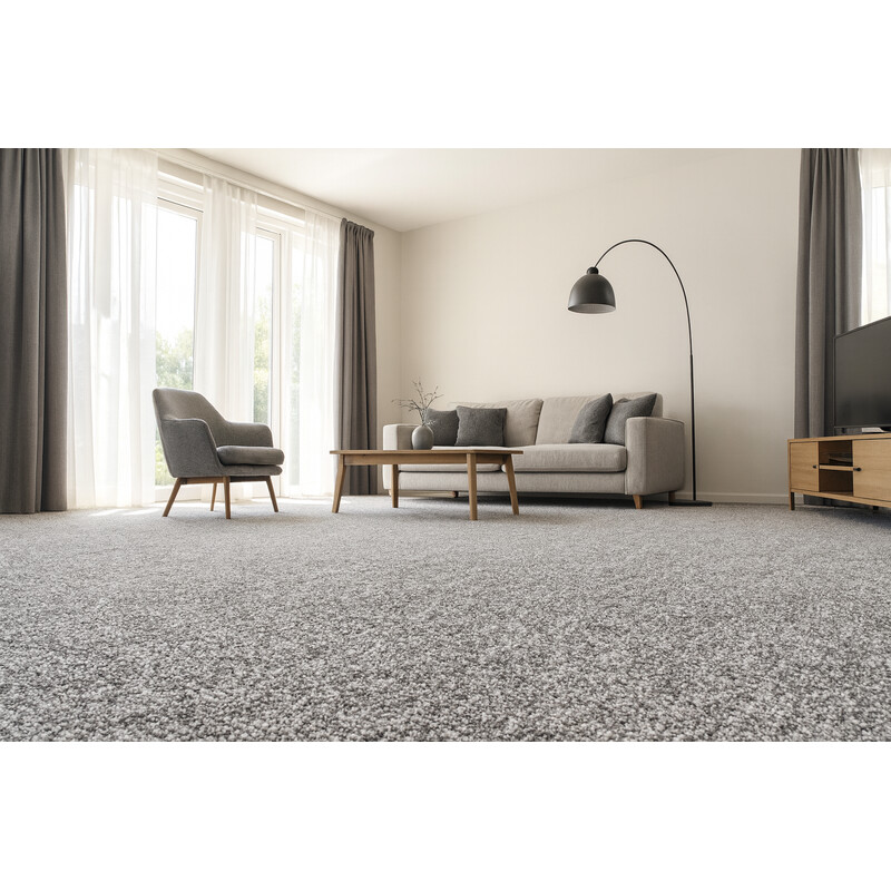 Šedý metrážový koberec s poutavým melírováním, které zajišťuje, že koberec nemá zcela jednotnou barvu. Vyrábí se ze 100% polypropylenu a má krátký smyčkový vlas. Proto se vyznačuje vysokou odolností a snadnou údržbou. Položit ho můžete i do zatěžovanějších místností nebo na schody.