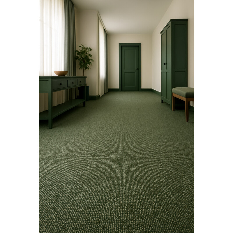 Tmavě zelená čistící zóna z odolného a měkkého polyamidového vlákna. Jedná se o velmi zátěžový produkt, který můžete položit do domácností i komerčních interiérů, na podlahové topení i schody. Skvěle absorbuje nečistoty a je snadný na údržbu.